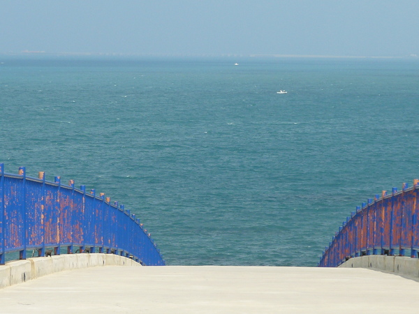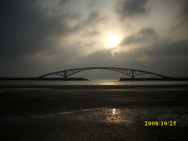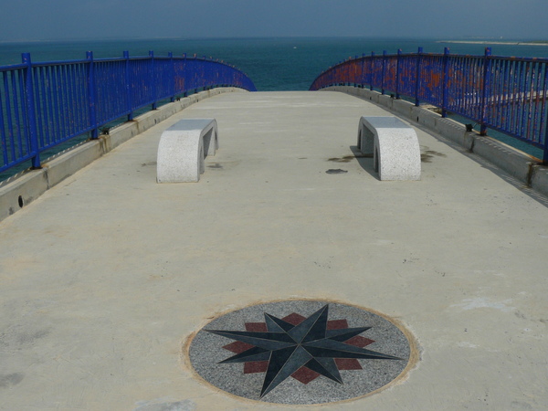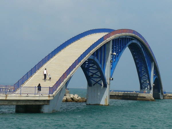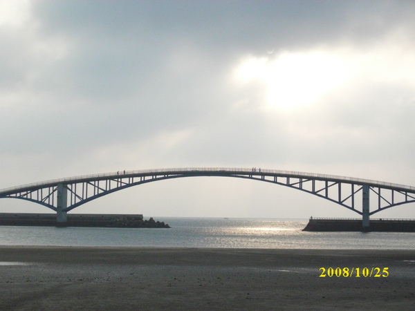 (我的夥伴第二天不死心,自己徒步又走來西瀛虹橋,而且親自”過橋”一遭,據她說,遠看沒什麼,實地去走,風好大好大,而且橋很陡,從橋的最高點拍下去,感覺就像要掉近海裡一樣)